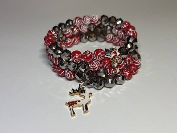 Elegant yet whimsical, this bracelet is perfect for holiday parties, cozy gatherings, or anyone who loves that merry peppermint-and-reindeer cheer.